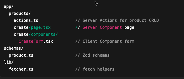 Recommended Folder Structure for CRUD with Server Actions